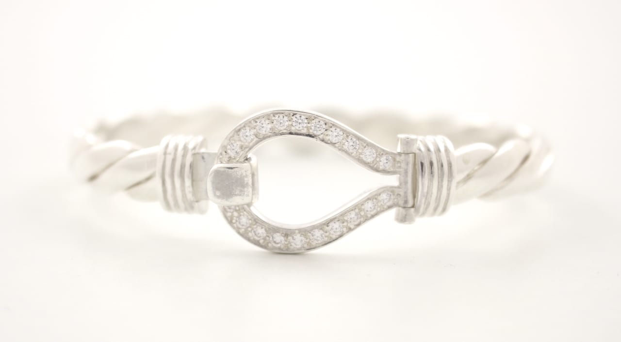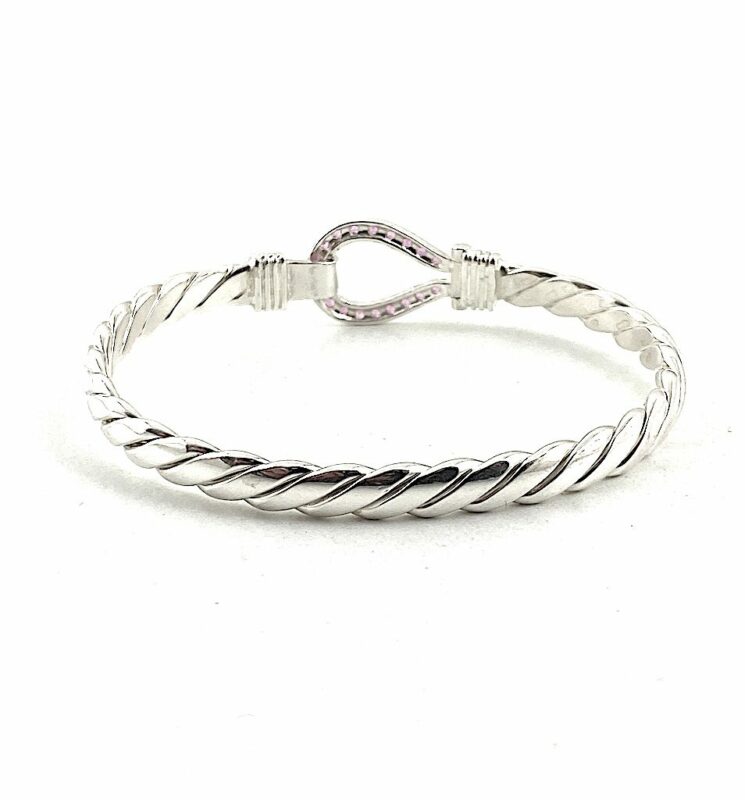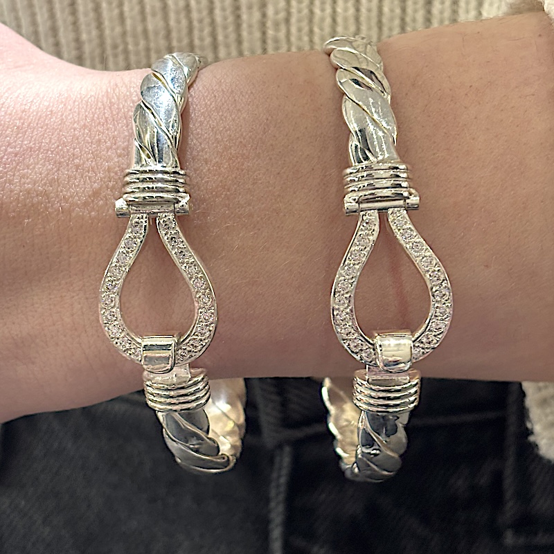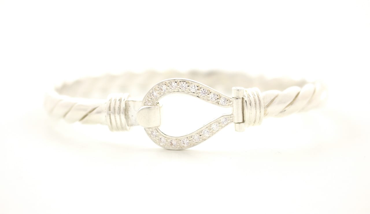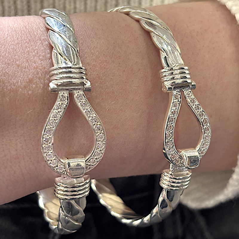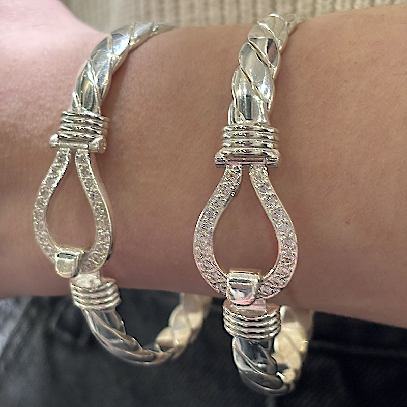 Solid Silver Ladies CZ Stone Set Large Size Hook Bangles