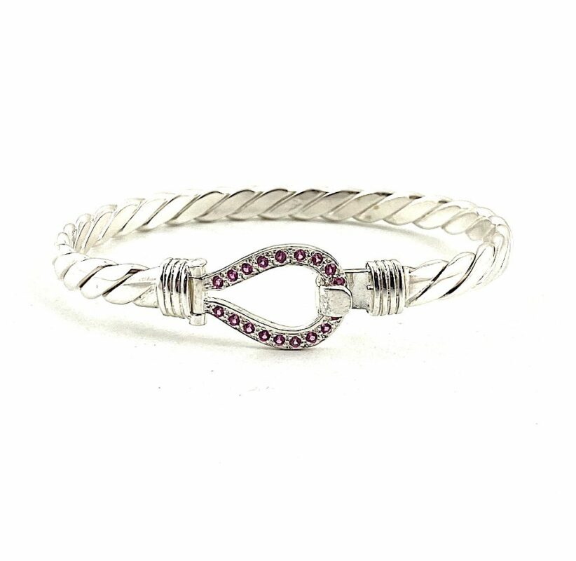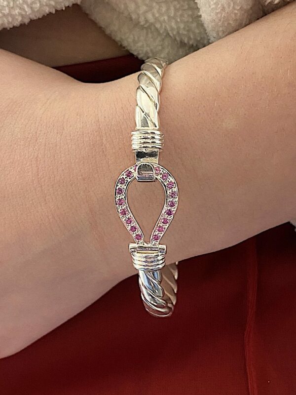 Ladies 4mm Width With Pink Stones. 7.5 Inch Circumference. Weighing On Average 24.8 Grams.