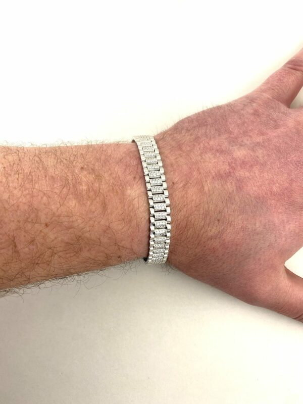 Silver 11mm His And Hers Presidential Bracelet. Made From Solid 925 Sterling Silver. Set With Brilliant Cut CZ Stones. 11mm Wide. Choice Of Three Lengths 7.5 Inches ( Ladies ), 8 Inches ( Gents And Ladies ), 8.5 Inches ( Gents )