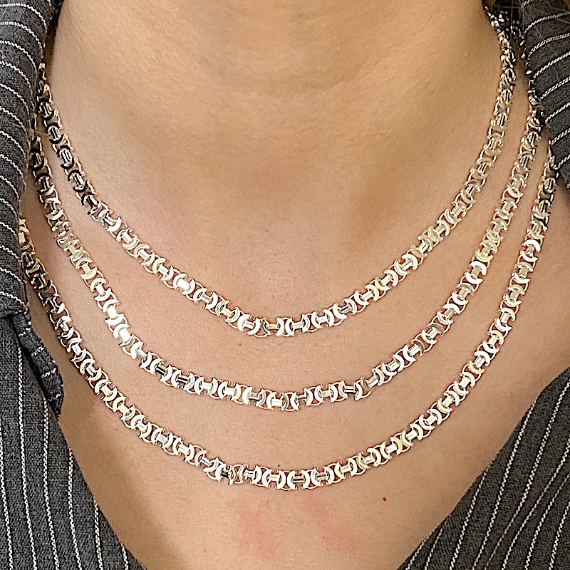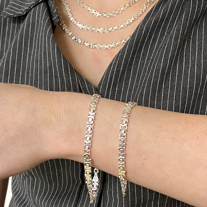 Solid Silver Silver Byzantine Bracelets And Chains. All Made From Solid 925 Sterling Silver, And 5mm Wide.