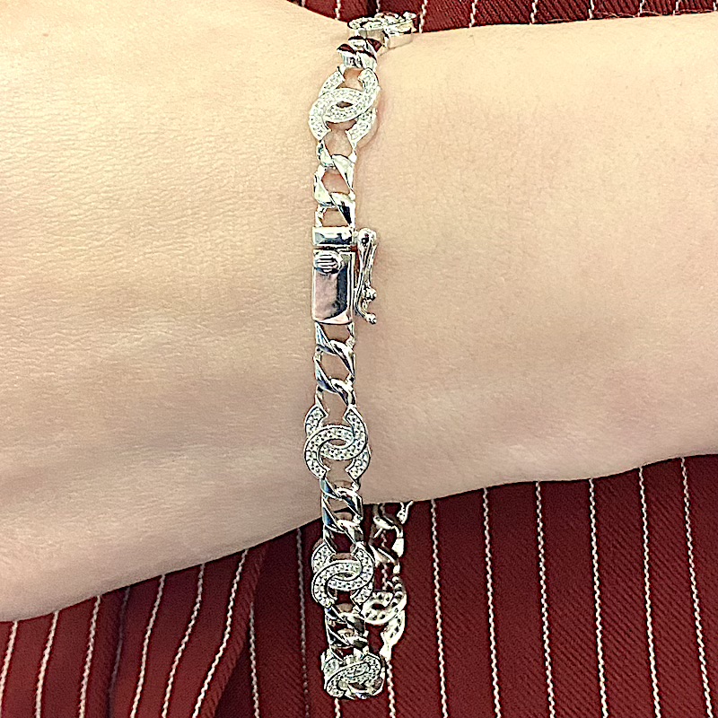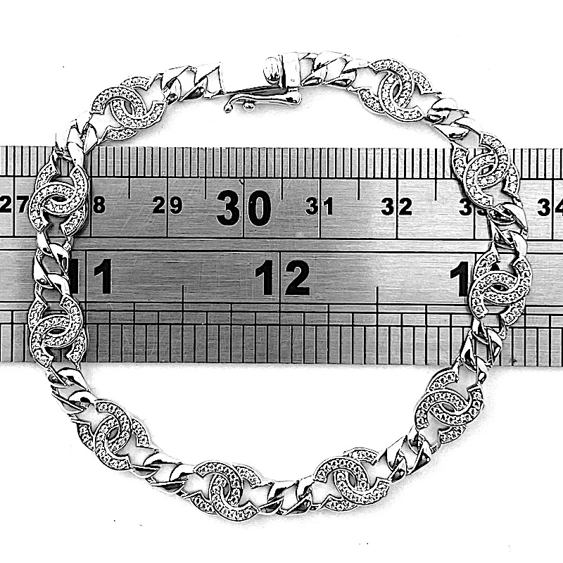 Ladies CC Line Bracelet. Made From Solid 925 Sterling Silver. Set With Brilliant Cut CZ Stones. Weighing On Average 11.7 Grams. 7.5 Inches Long
