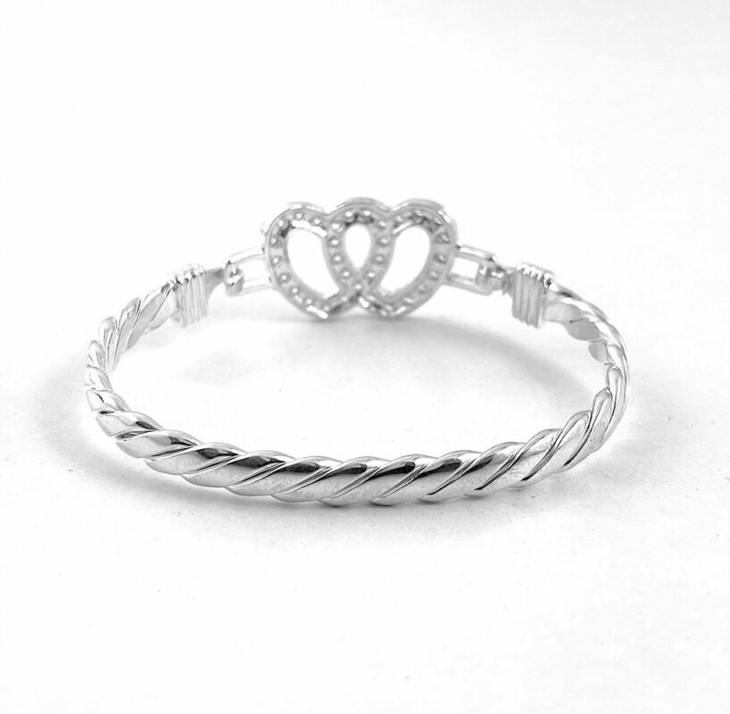 Silver Double Love Heart Bangle