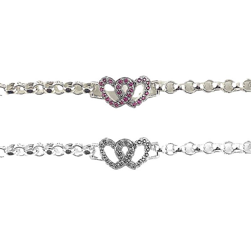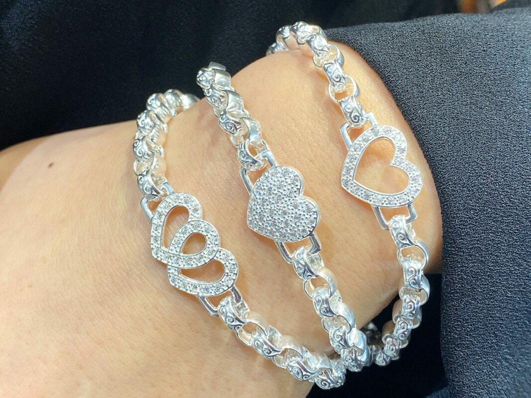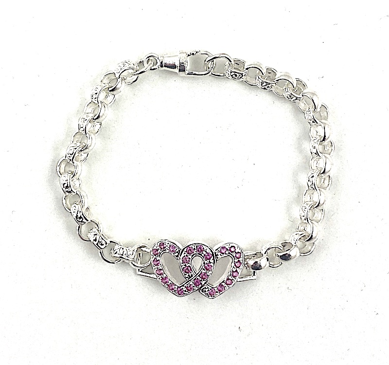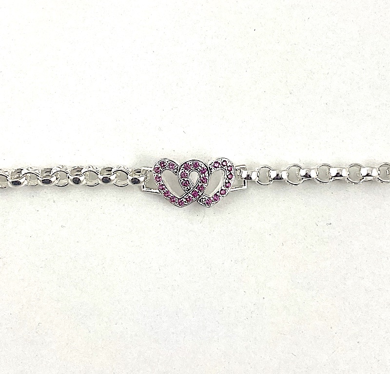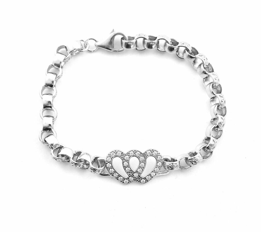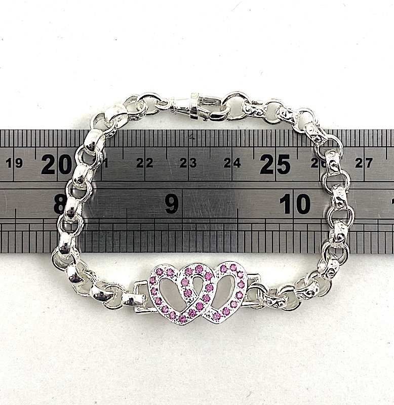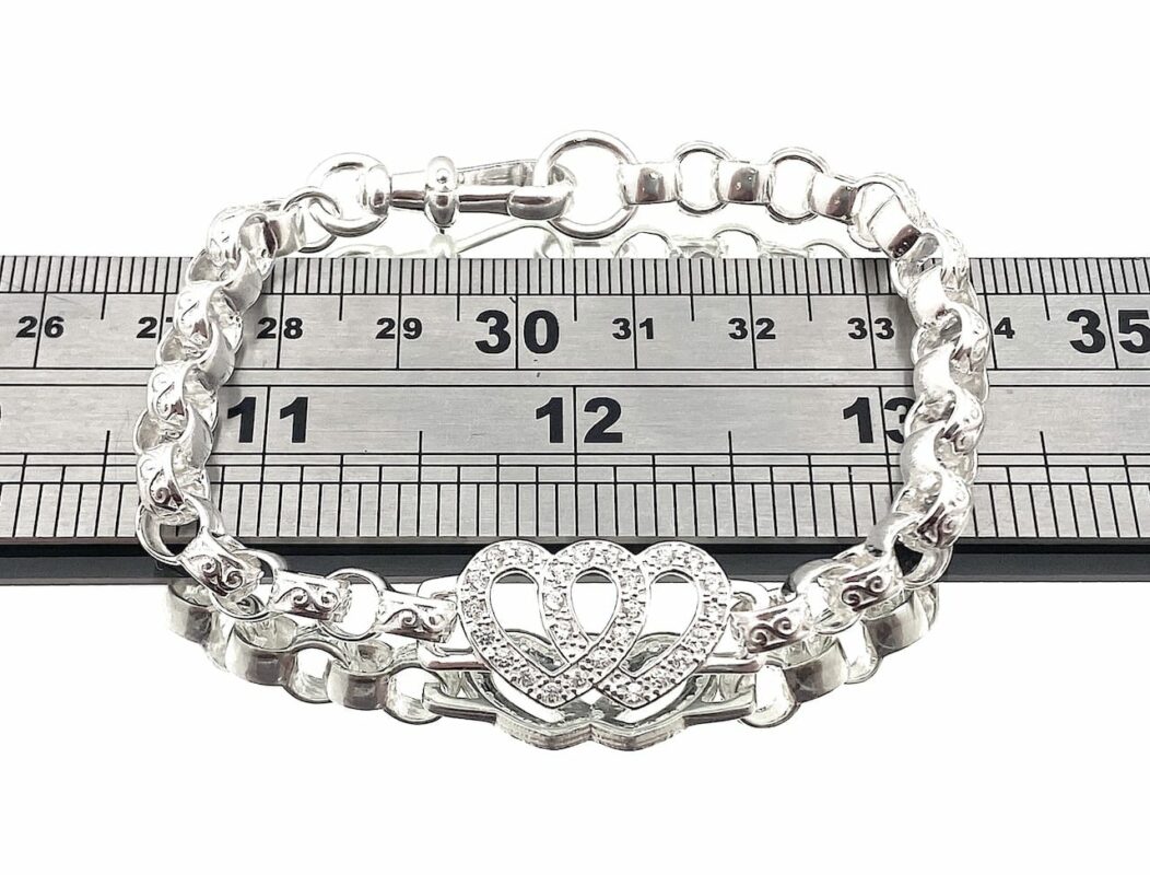 Double Love Heart Belcher Bracelet. Made From Solid 925 Sterling. Set With Brilliant Cut CZ Stones. 7.5 Inches Long. Weighing On Average 15.7 Grams.