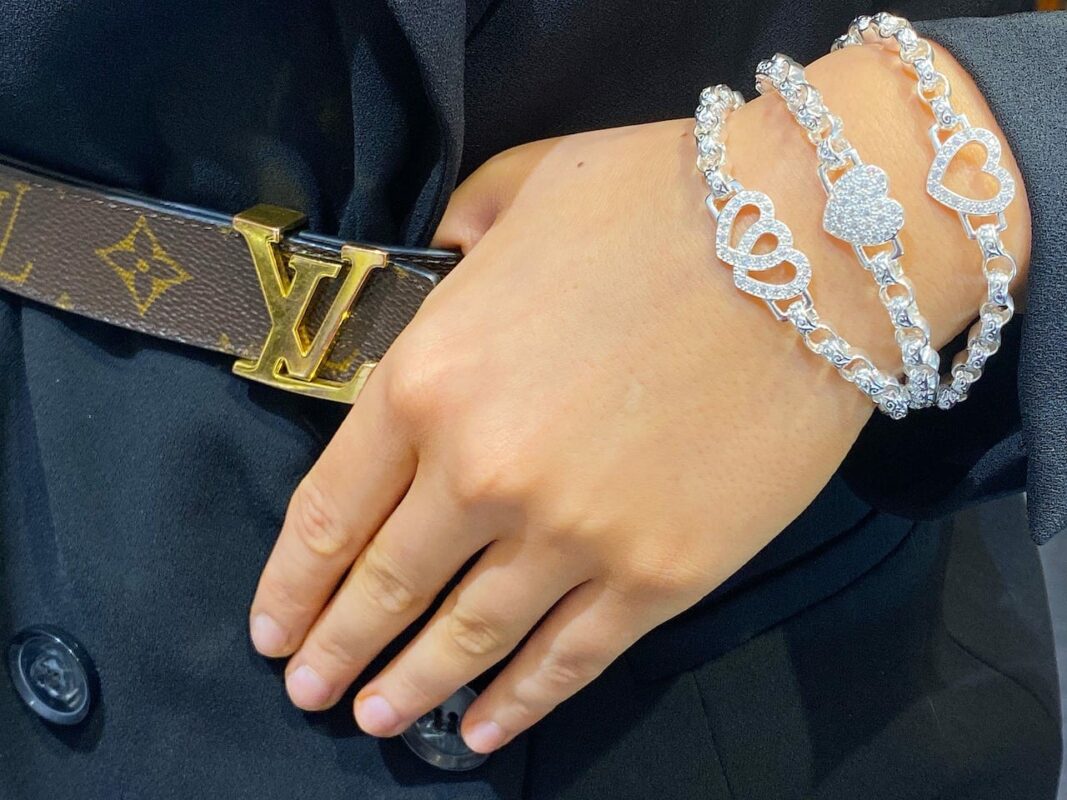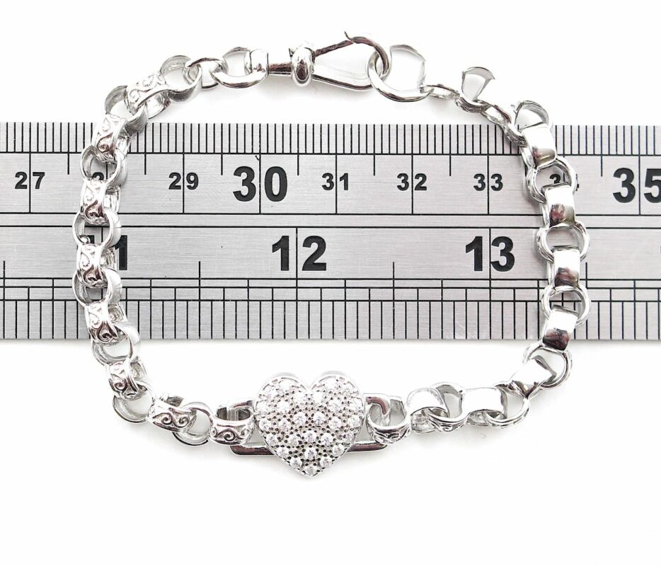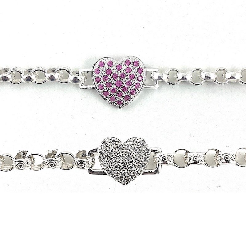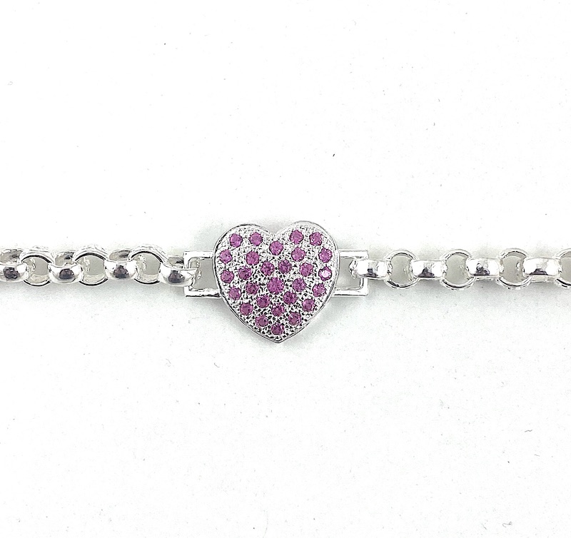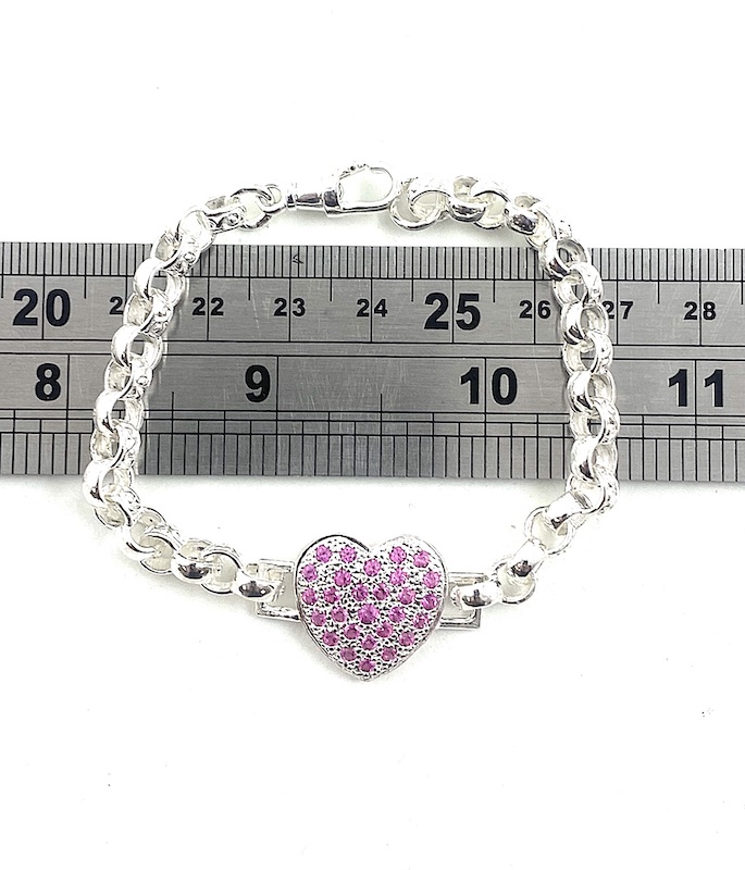 Solid Silver Love Heart Belcher Bracelet. Made From Solid 925 Sterling Silver. Set With Brilliant Cut CZ Stones. Weighing On Average 16.4 Grams. 7.5 Inches Long ( Standard Ladies Size ). Choice Of Either Pink Or White CZ Stones.