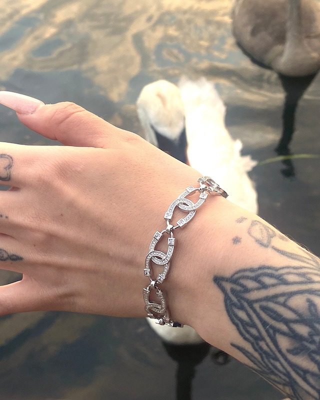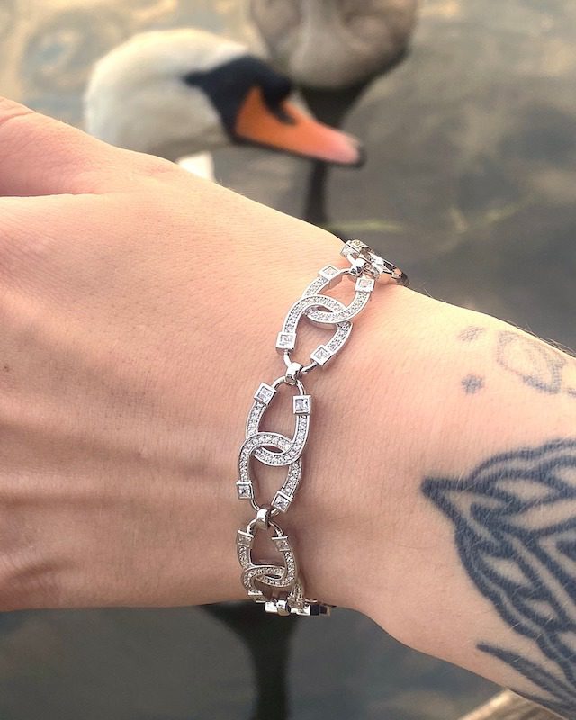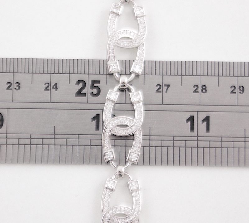 Silver Multi Horse Shoe Bracelet. Made From Solid 925 Sterling Silver. Set With Brilliant Cut CZ Stones. Average Weight 14.7 Grams. Adjustable Length. 6.75 Inches to 8 Inches Long. Code BX9 Ri.K
