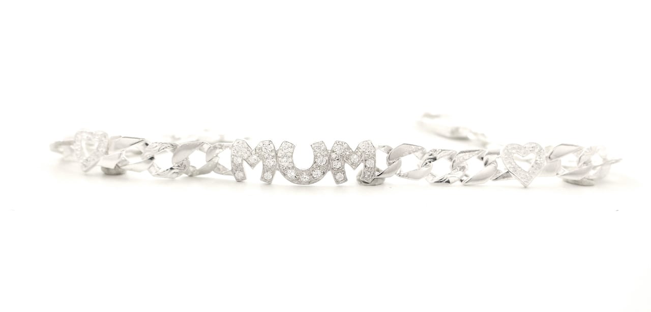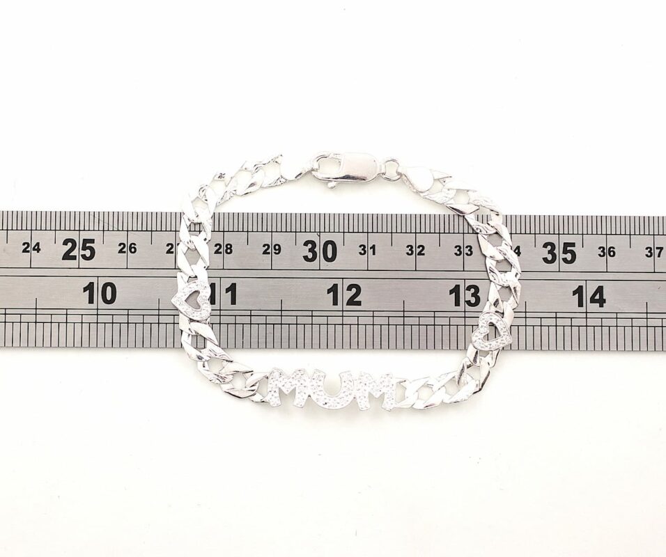 Silver Mum Bracelet. Made From Solid 925 Sterling Silver. Set With Brilliant Cut CZ Stones. Weighing On Average 8 Grams. 7.8 Inches Long.
