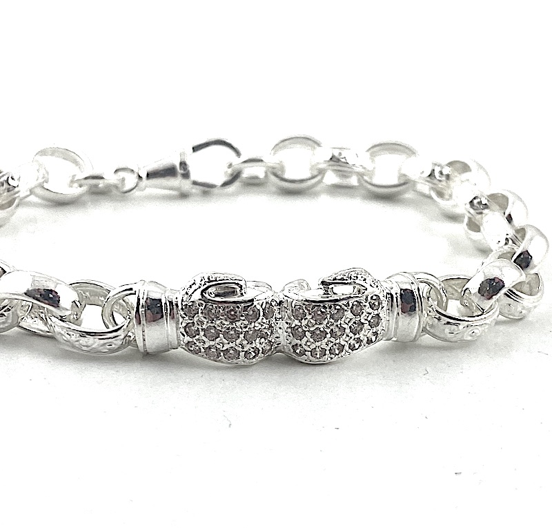 Solid Silver Gents Boxing Glove Belcher Bracelet
