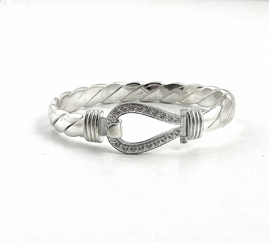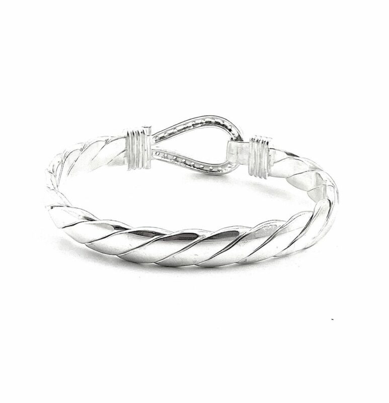 Solid Silver Gents Hook Bangle. Weighing On Average 61 Grams. 8.5 Inch Circumference. Set With Brilliant Cut CZ Stones