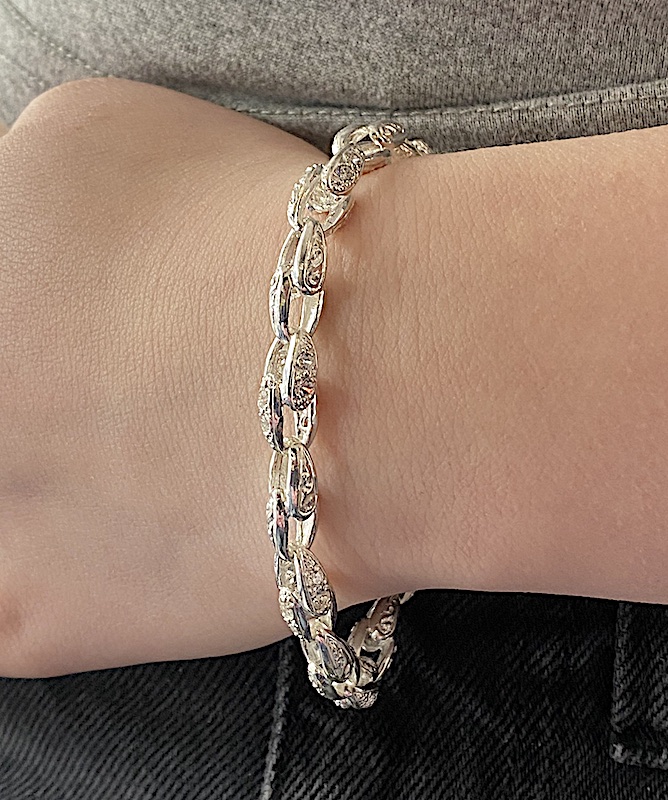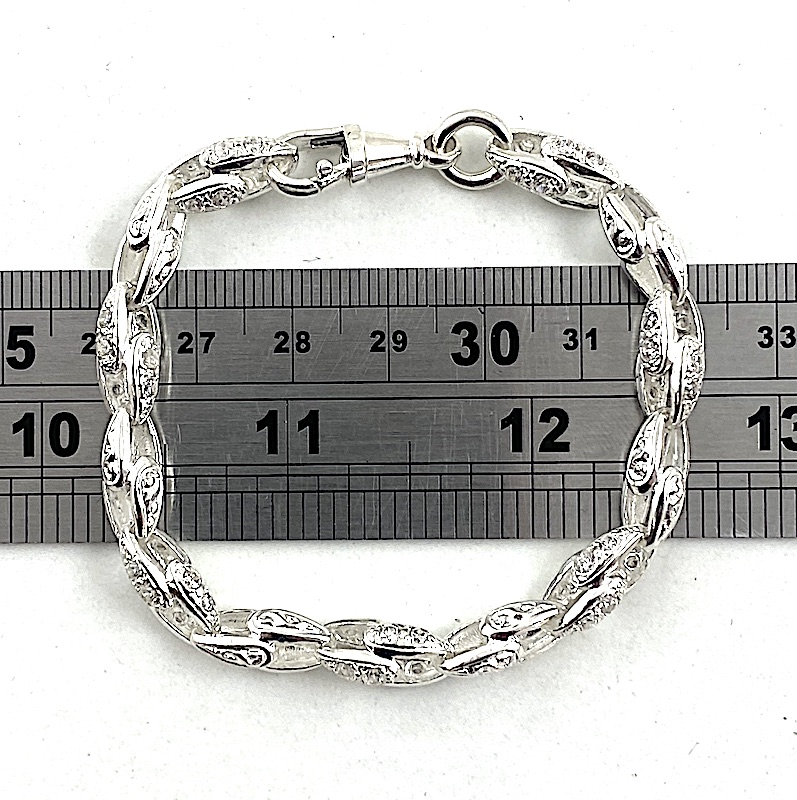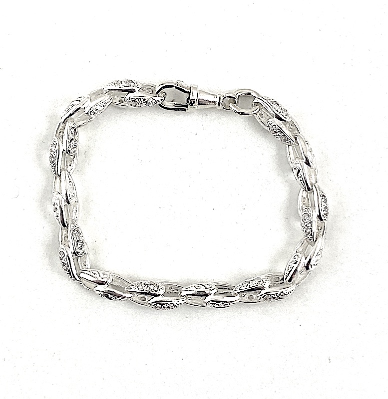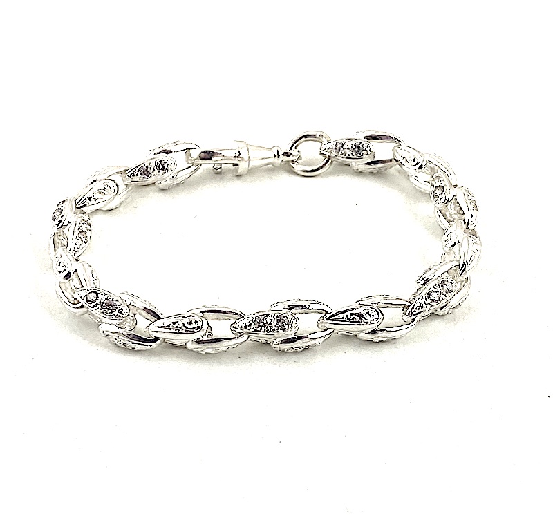Solid Silver Stone Set Ladies Tulip Bracelet. Made From Solid 925 Sterling Silver. Set With Brilliant Cut CZ Stones. Weighing On Average 17 Grams, 7.5 Inches Long.