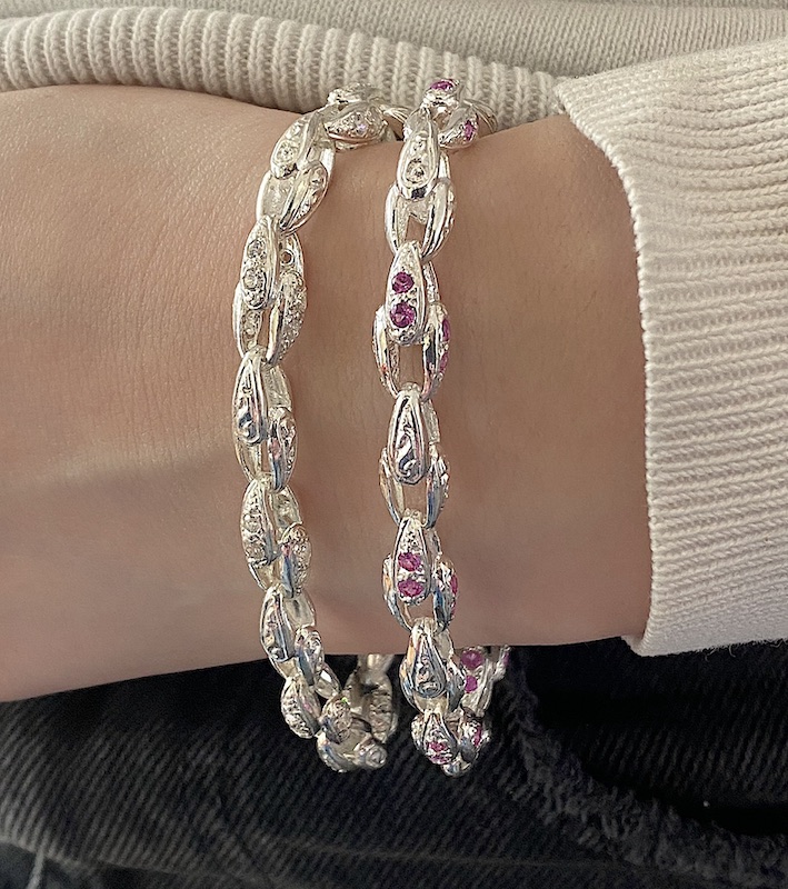 Stunning Solid Silver Ladies Stone Set Tulip Bracelet