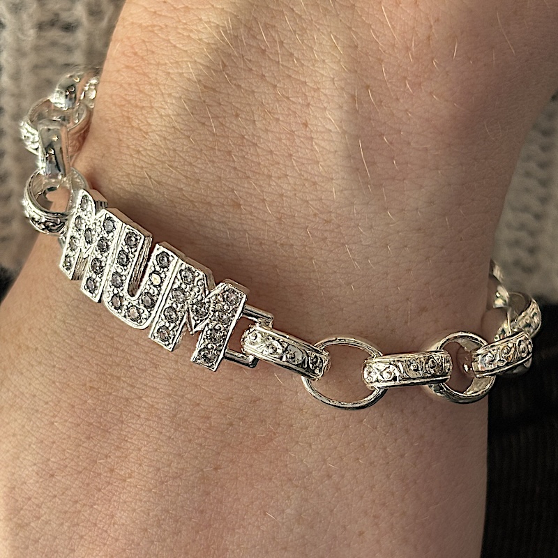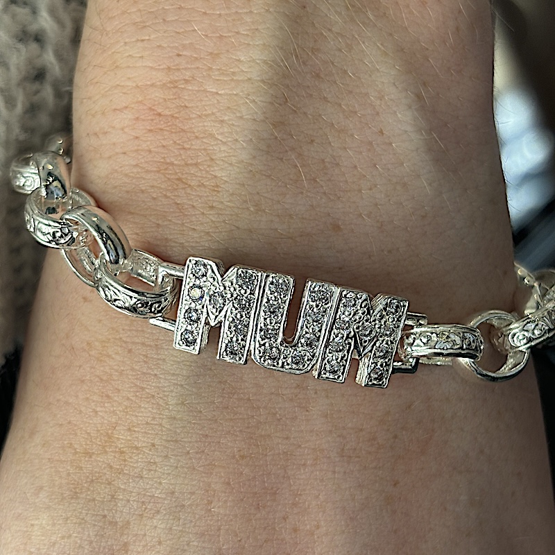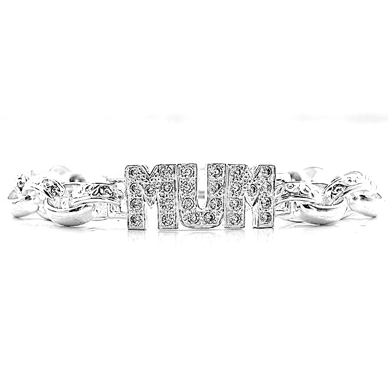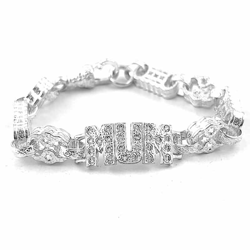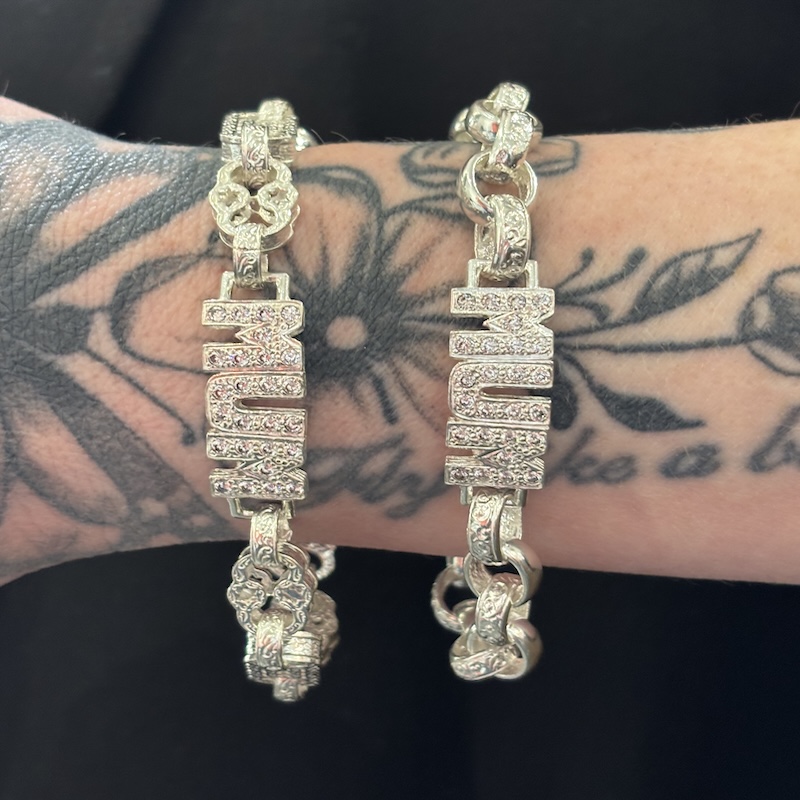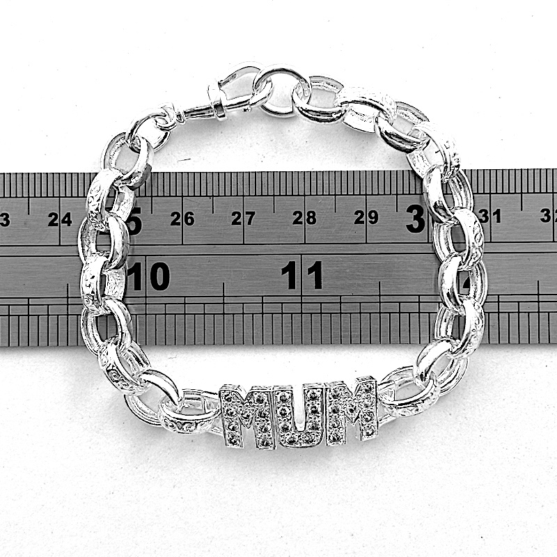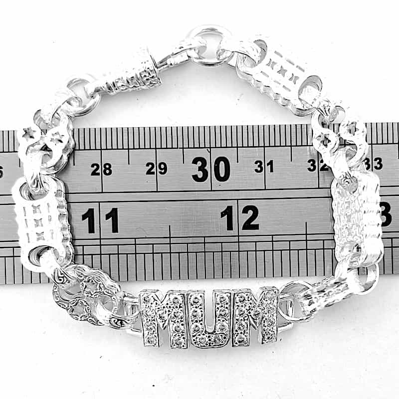 Solid Silver Mum Bracelets. Made From Solid 925 Sterling Silver. Set With Brilliant Cut CZ Stones. Choice Star Bar And Belcher Links. 7.5 Inches Long. Star Bar Weighing On Average 22.7 Grams. Belcher Weighing On Average 19.1 Grams.