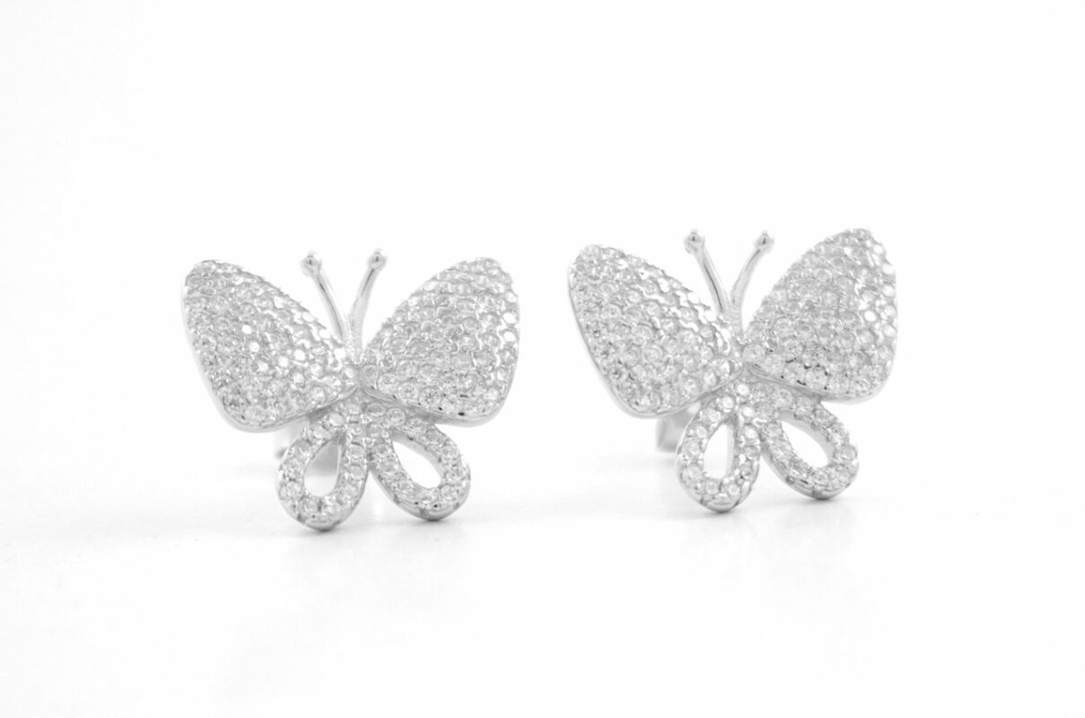 Silver Large Butterfly Stud Earrings. Made From Solid 925 Sterling Silver. Set With Brilliant Cut CZ Stones. Weighing On Average 3.6 Grams. 16mm Wide, 15mm High.