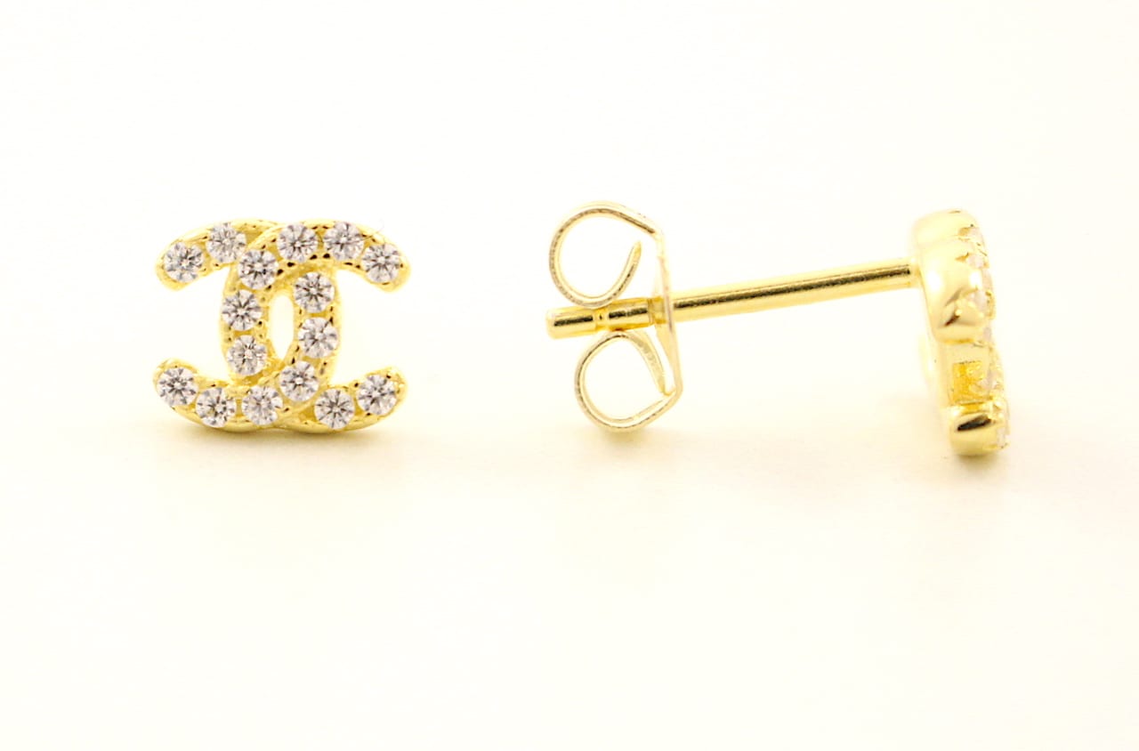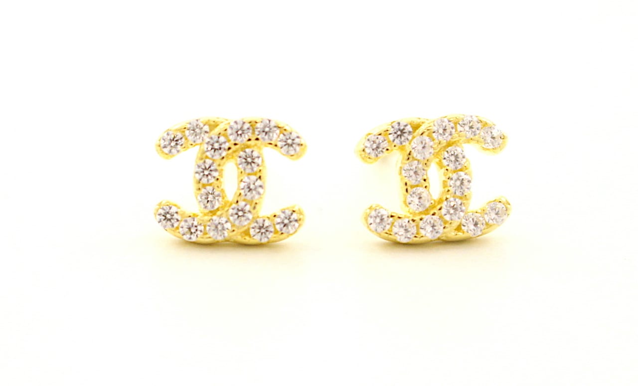 Small Gold Bonded Double Horse Shoe Studs. Made From Solid 925 Sterling silver. Set With Brilliant Cut CZ Stones. Plated With 18ct Gold. Width Of Earring 8mm, Height Of Earring 6mm.