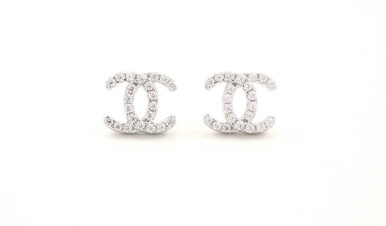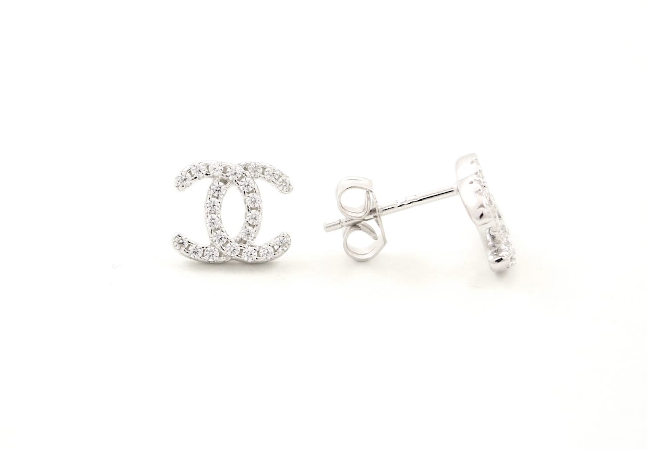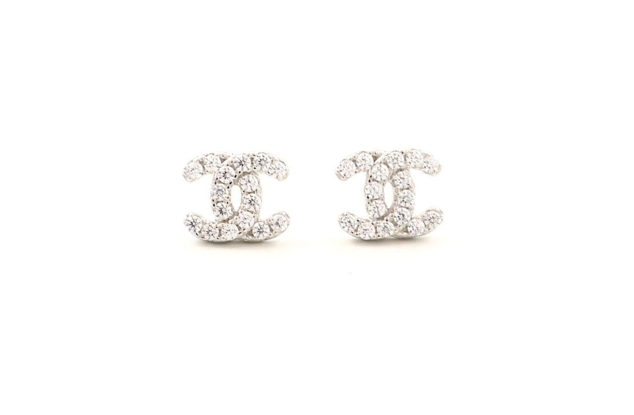 Solid Silver Stone Set Double Horse Shoe Studs