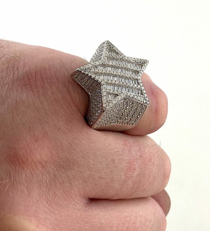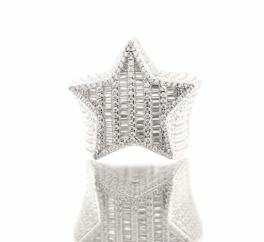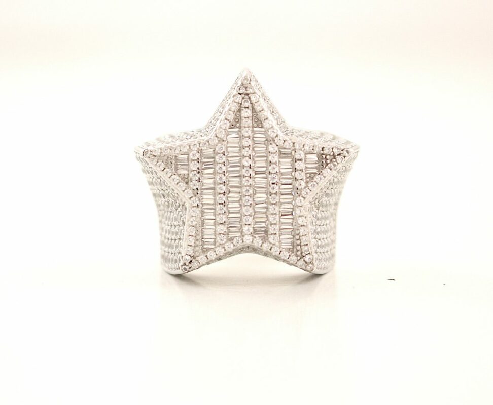 Extra Large Solid Silver Star Rings. Made From Solid 925 Sterling Silver. Set With Brilliant And Baguette Cut CZ Stones.