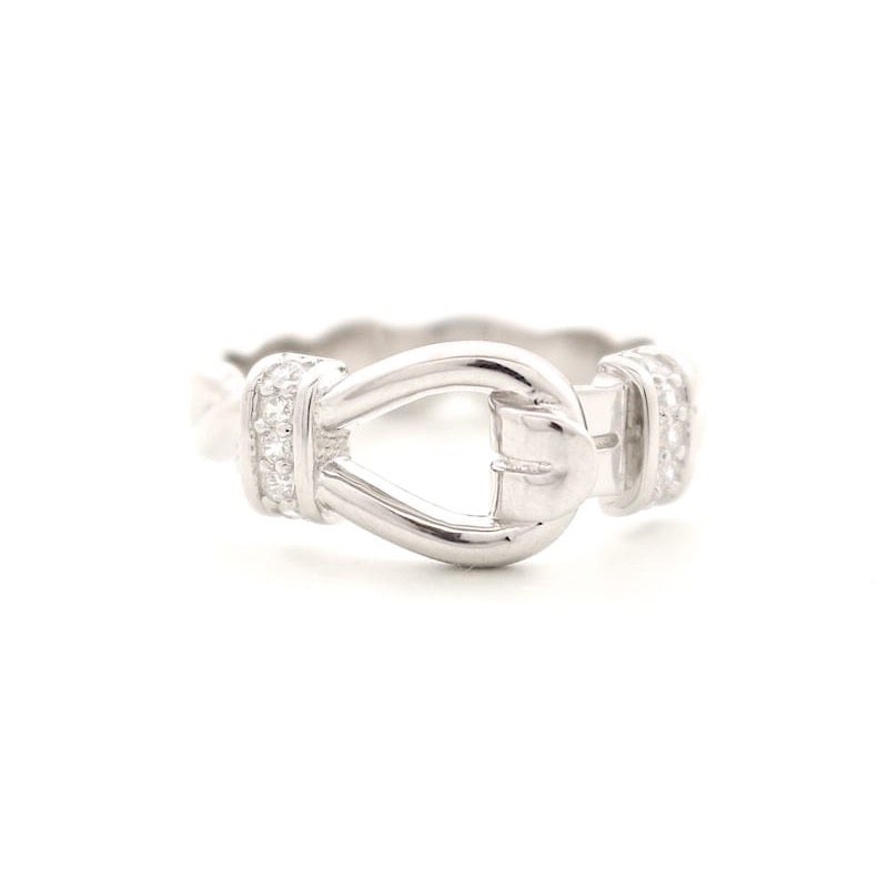 Silver Hook Ring. Made From Solid 925 Sterling Silver. Set With Brilliant Cut CZ Stones.